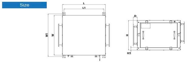 | Model | L | L1 | W | W1 | H | H1 | D | Cửa cấp (X*Y) |